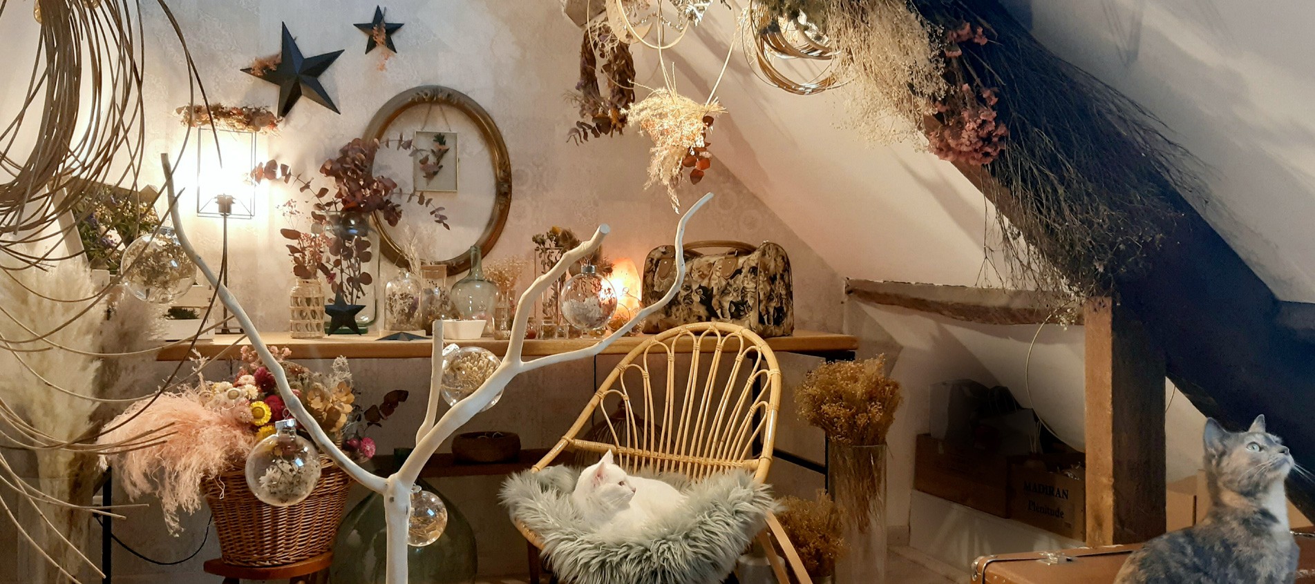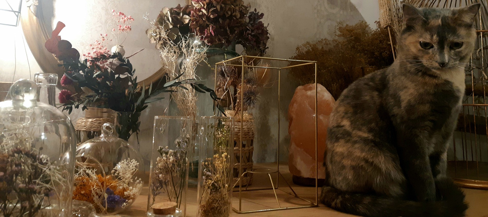 These one-of-a-kind decorative objects are designed and hand-crafted in Normandy, France, according to the seasons to harmonize with your interior gracefully. Place these 'parcels of nature' on a table, a shelf or on a mantle and let them come alive as the light from a window or lamp highlights their grace and intricacy. The perfect gift for a loved one, including yourself!"A seated cat is the quintessence of serenity." Jules Renard